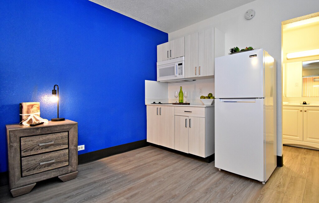 Siegel Suites San Antonio Apartments are a great place to stay in the beautiful city of San Antonio, TX. We offer weekly and monthly payment options, for your convenience. You are just a short drive from the Riverwalk, Sea World, and Six Flags Fiesta TX. Our apartments are conveniently located near restaurants, cafes, parks, and don’t forget about the water park just across I-35. There are many other San Antonio and New Braunfels places to visit within a short drive of this property. We rent large, fully furnished studio apartments and one-bedroom apartments that are move-in ready (with kitchenettes coming soon). Want to bring your pet? No problem. We are pet friendly! Rent your apartment today with no long term lease, your choice of low weekly or monthly rent, and no credit check. Our studio and 1 bedroom apartments are a great value, with free utilities, free cable TV, and more. Contact us for more details on what Siegel Suites San Antonio has to offer. We are directly on the busline.