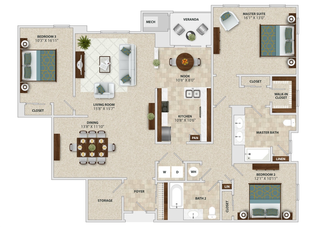 - 2 & 3 Bedroom Apartment Homes Up To 1,873 sq. ft.