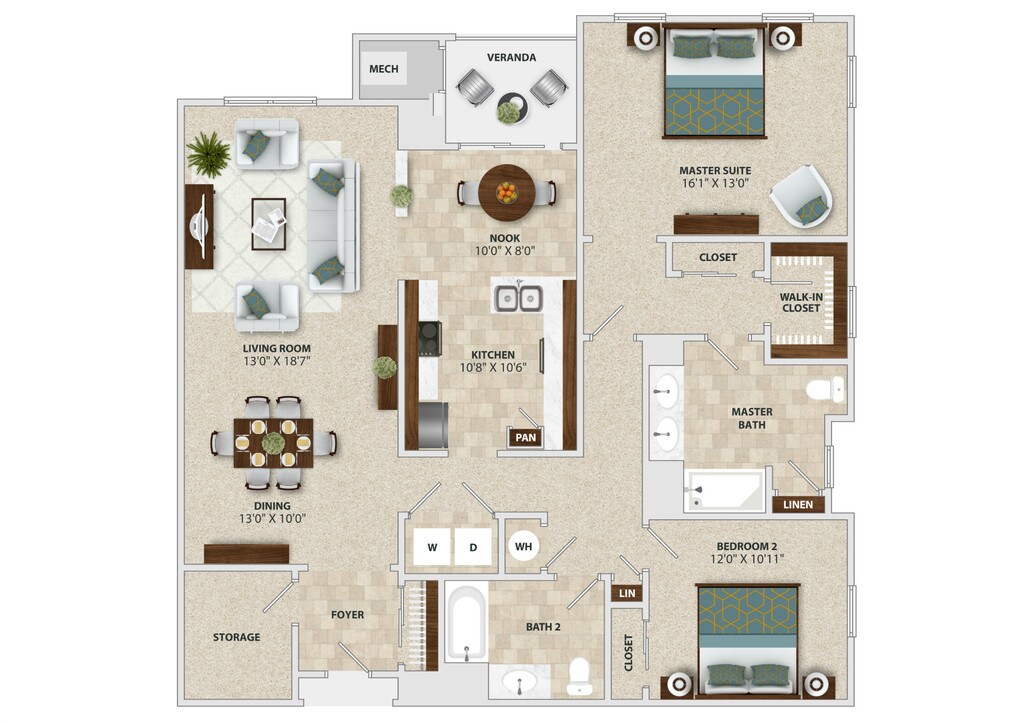 Apartment Model: Verano II2 Bedroom, 2 Bath, 1483 sq ftAvailable Now![]()