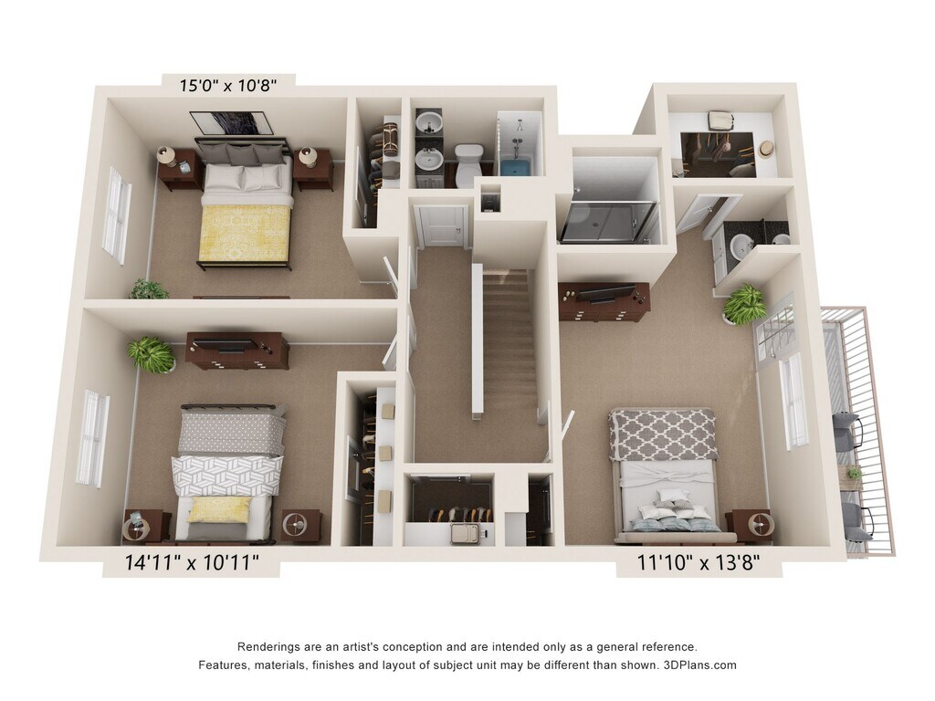 2 Beds, 2.5 Baths, 1325 sq ftLargest 2 BedroomThis is the largest 2 Bedroom at this PropertyModel Gallery