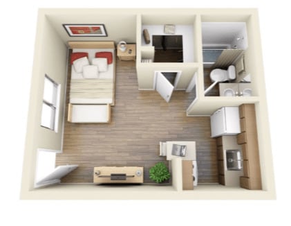 Studio, 1 Bath, 380 sq ftAvailable NowModel Gallery