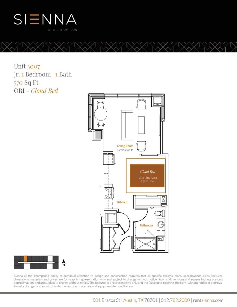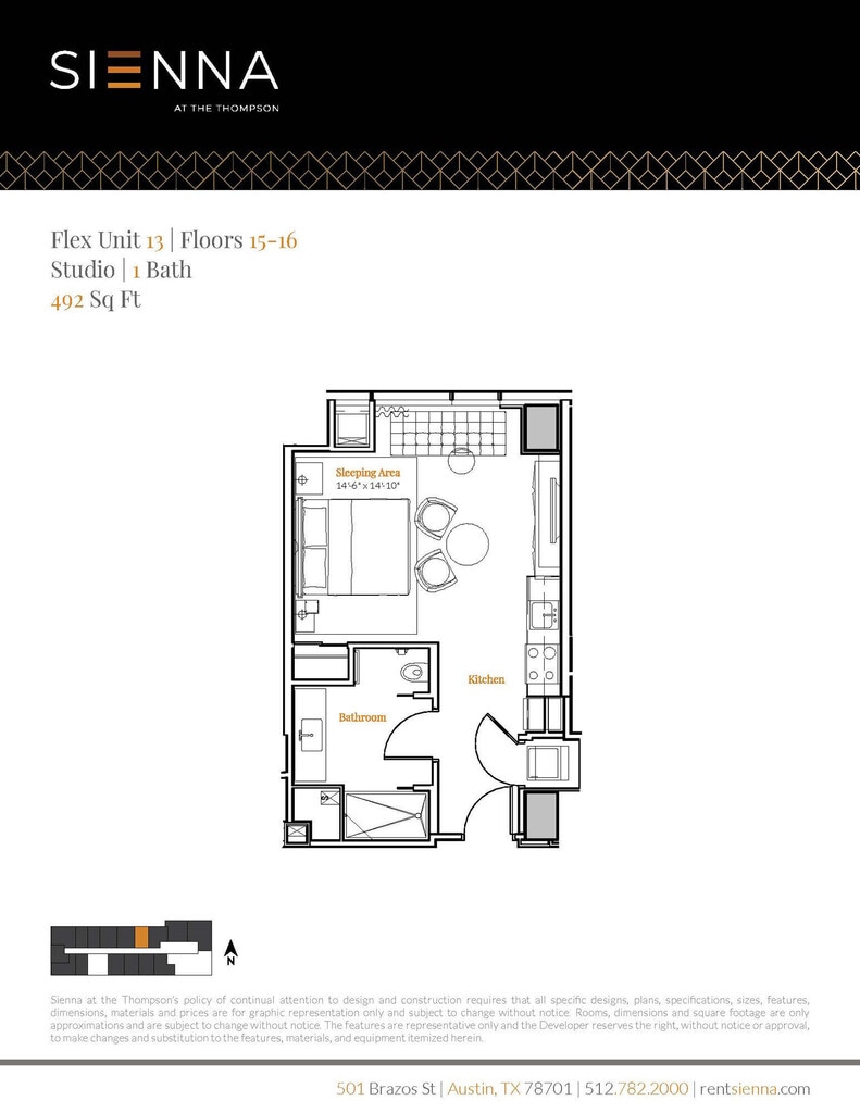 Sienna at the Thompson is located at 501 Brazos St near the 6th Street District area of Austin, TX