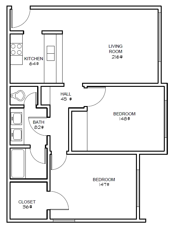 - 700–1,100Square Feet