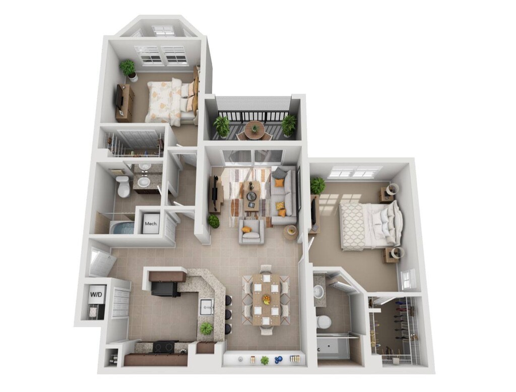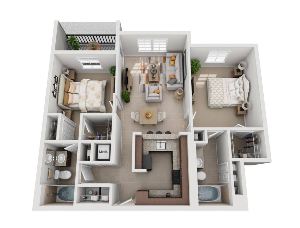 2 Beds, 2 Baths, 1196-1230 sq ftAvailable NowLargest 2 BedroomThis is the largest 2 Bedroom at this PropertyModel Gallery