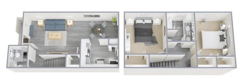2 Beds, 1.5 Baths, 1010 sq ftModel Gallery