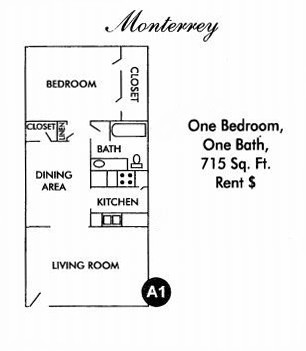 Apartment Model: Monterrey A11 Bedroom, 1 Bath, 715 sq ftUnavailableFloorplansPhotos![]()