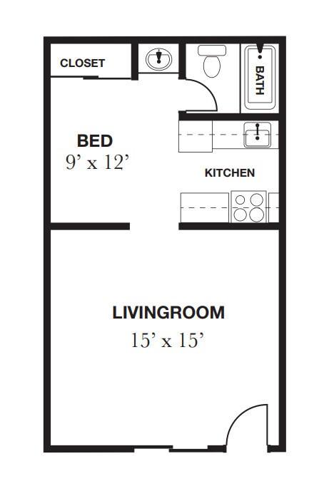 Studio, 1 Bath, 480 sq ftAvailability Details