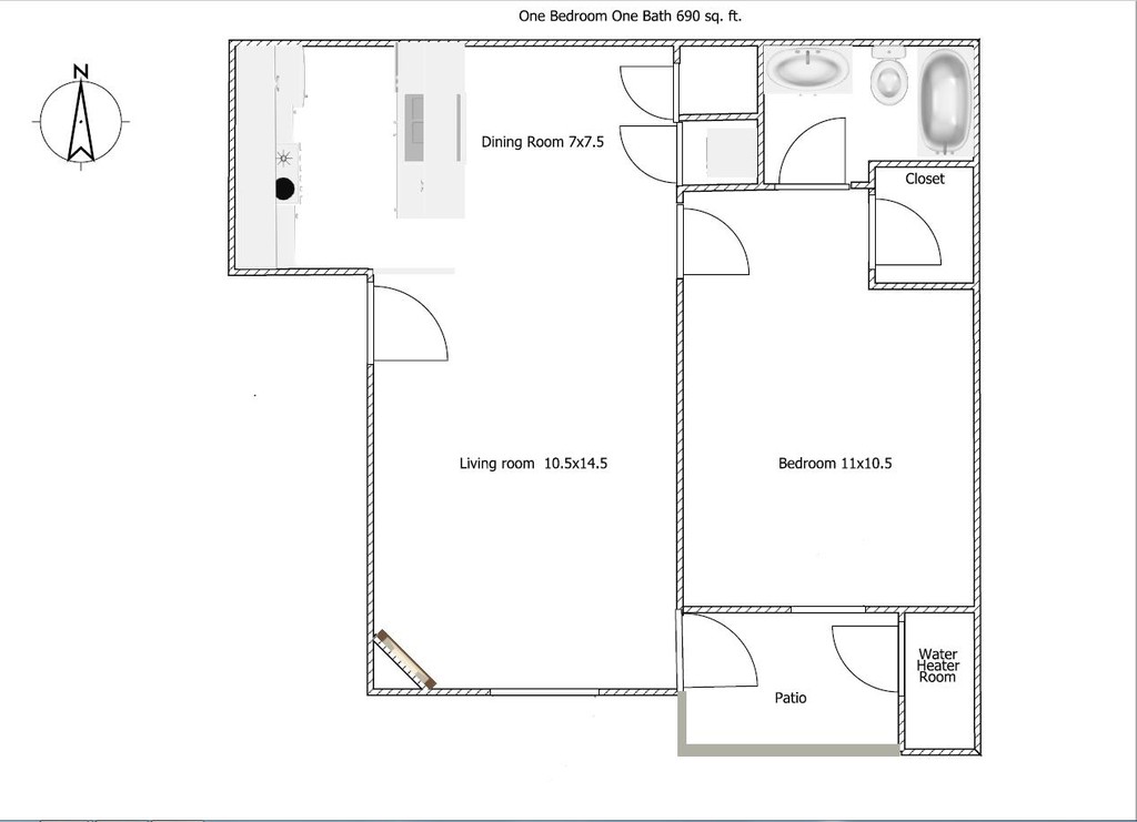 1 Bed, 1 Bath, 690 sq ftAvailable NowModel Gallery