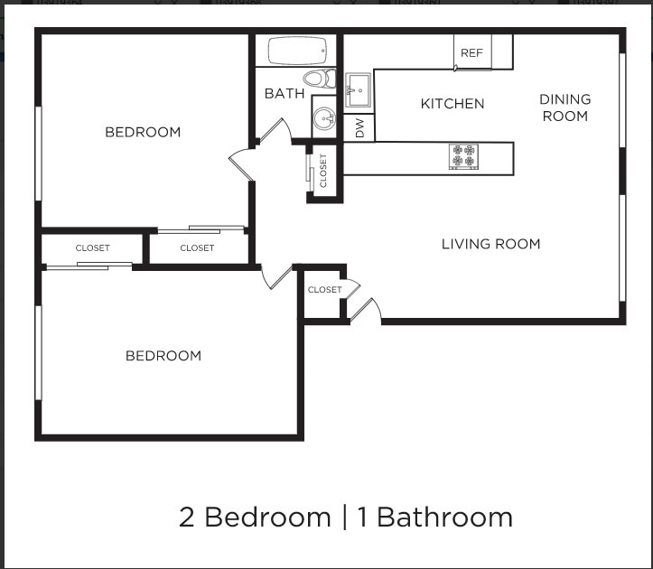 1 Bedroom - Floorplan 1 2 Bedrooms