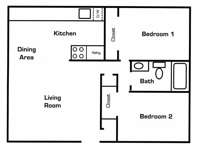 Apartment Model: 2 Bed 1 BathFrom $1,2502 Bedroom, 1 Bath, 734 sq ftAvailable Now![]()