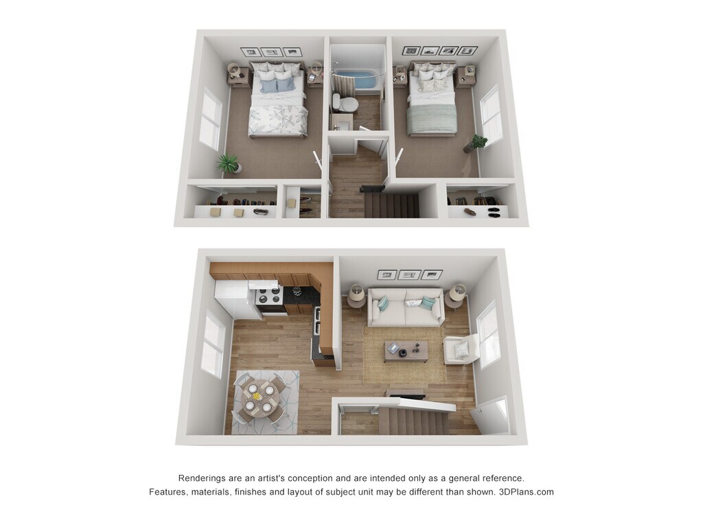2 bedroom 1 bath townhome - Floorplan 1 Apartment Unit: 304Apartment Model: 2 bedroom 1 bath townhome2 Bedroom, 1 Bath, 833 sq ftAvailable Now