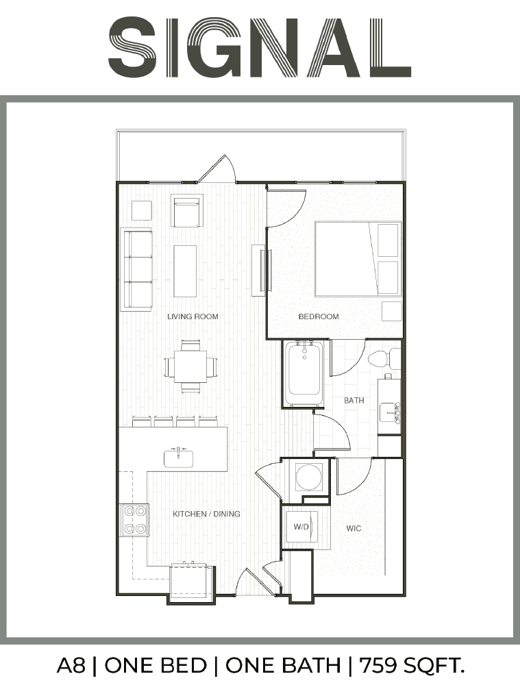 A8 - Floorplan 1 Apartment Unit: 5-5305Apartment Model: A8From $1,7991 Bedroom, 1 Bath, 759 sq ftAvailable NowFloorplan A10