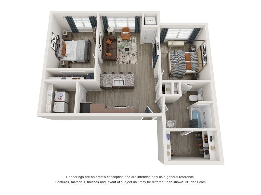 2 Beds, 2 Baths, 1040 sq ftLargest 2 BedroomThis is the largest 2 Bedroom at this PropertyModel Gallery