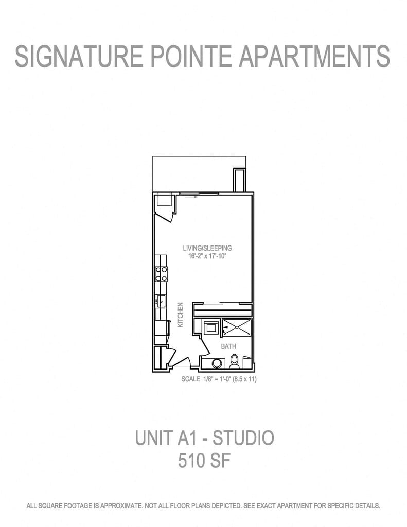 Style A1 (Surface Parking) - Floorplan 2 Apartment Unit: 2039_104Apartment Model: Style A1 (Surface Parking)$1,220Studio, 1 Bath, 510 sq ftAvailable NowApartment Unit: 2003_125Apartment Model: Style A1 (Surface Parking)$1,270Studio, 1 Bath, 510 sq ftAvailable NowApartment Unit: 2051_104Apartment Model: Style A1 (Surface Parking)$1,395Studio, 1 Bath, 510 sq ftAvailable January 1, 2026Style A4 (Surface Parking)