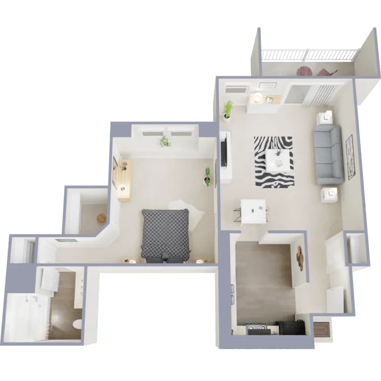 1 Bed, 1 Bath, 588 sq ftModel Gallery