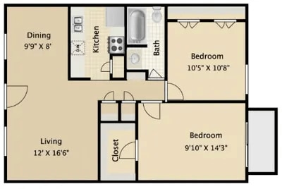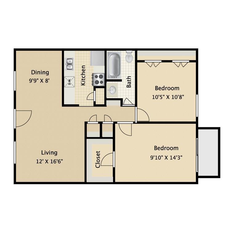 2 Beds, 1 Bath, 816 sq ftAvailable NowModel Gallery