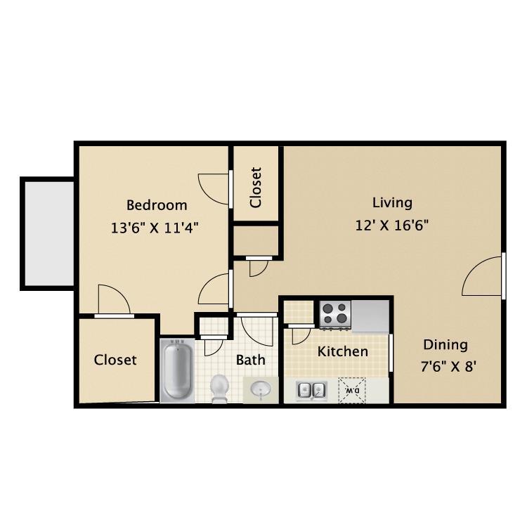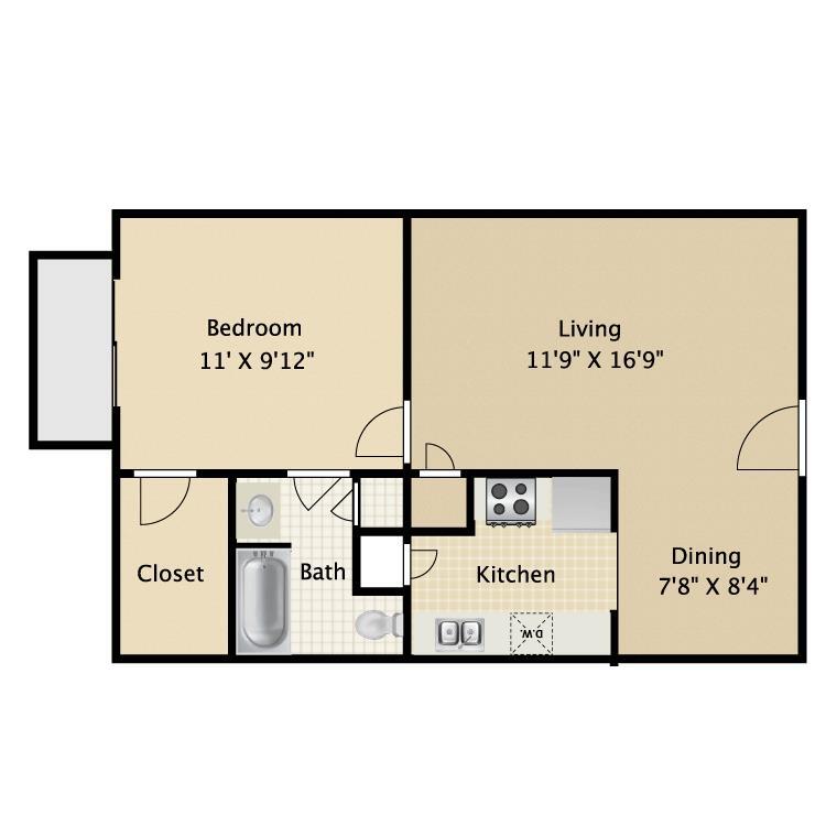 Apartment Model: A1 - 1x1$8251 Bedroom, 1 Bath, 520 sq ftAvailable Now![]()