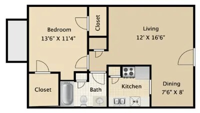 Apartment Model: B1 - 2x1From $8952 Bedroom, 1 Bath, 816 sq ftAvailable Now![]()
