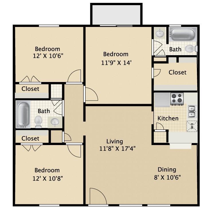 Apartment Model: A3R-1x1Call For Rates1 Bedroom, 1 Bath, 704 sq ftUnavailable![]()