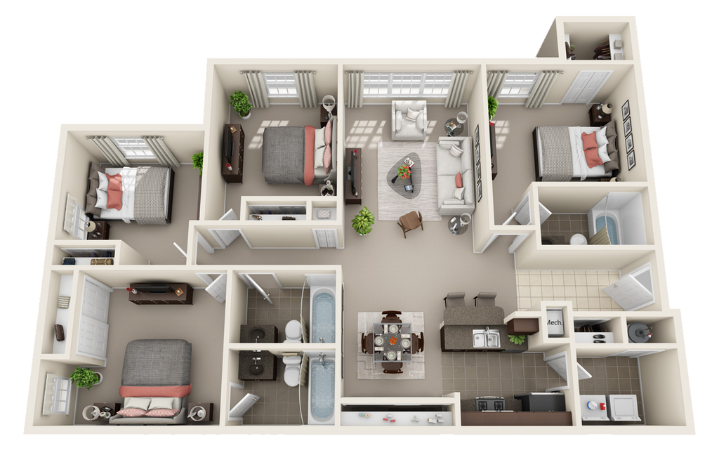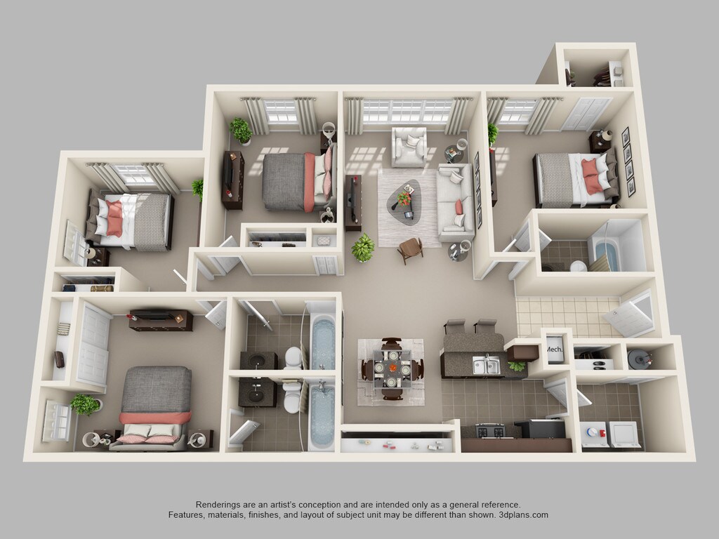 C1 - Floorplan 2 Apartment Unit: E101Apartment Model: C1$1,3793 Bedroom, 2 Bath, 1201 sq ftAvailable November 4, 2025Apartment Unit: E208Apartment Model: C1$1,5493 Bedroom, 2 Bath, 1201 sq ftAvailable November 4, 2025Apartment Unit: H101Apartment Model: C1$1,4593 Bedroom, 2 Bath, 1201 sq ftAvailable November 4, 20254 Bedrooms