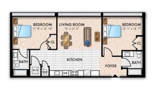 Apartment Model: 2 Bed 2 BathCall For Rates2 Bedroom, 2 Bath, 1112-1680 sq ftUnavailable![]()