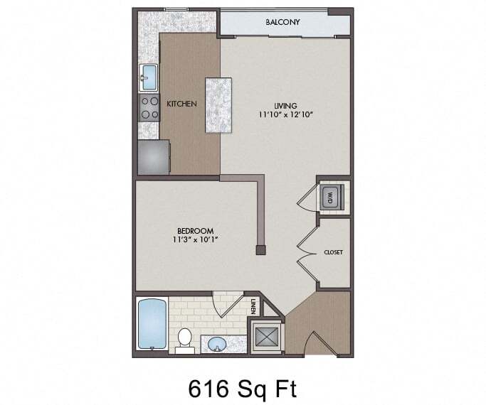 Studio, 1 Bath, 616 sq ftAvailable NowModel Gallery
