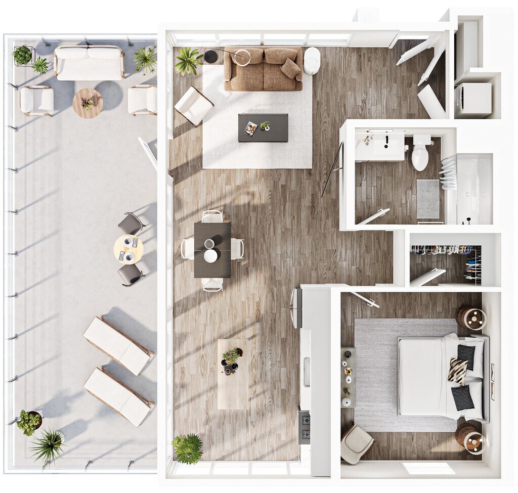 Studio, 1 Bath, 770 sq ftLargest StudioThis is the largest Studio at this PropertyModel Gallery