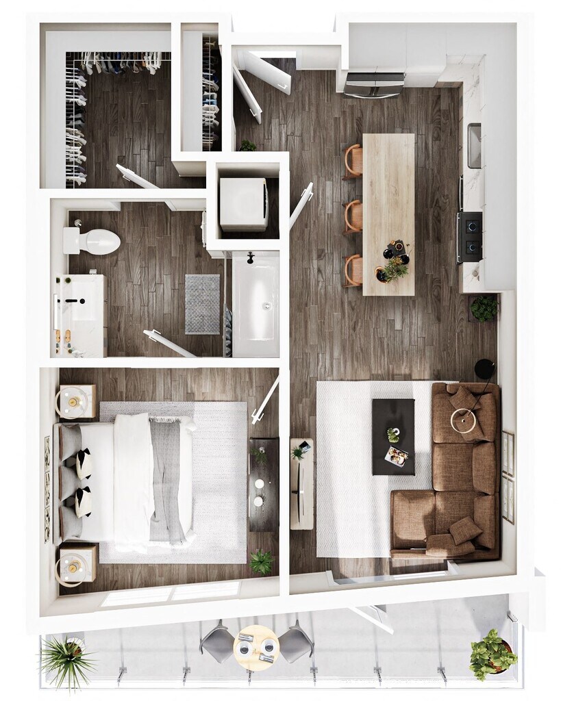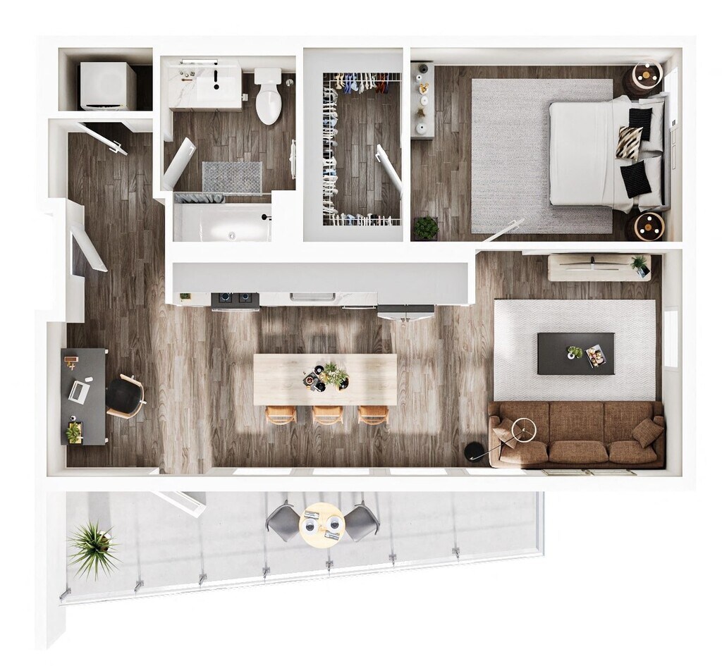 Studio, 1 Bath, 616 sq ftModel Gallery