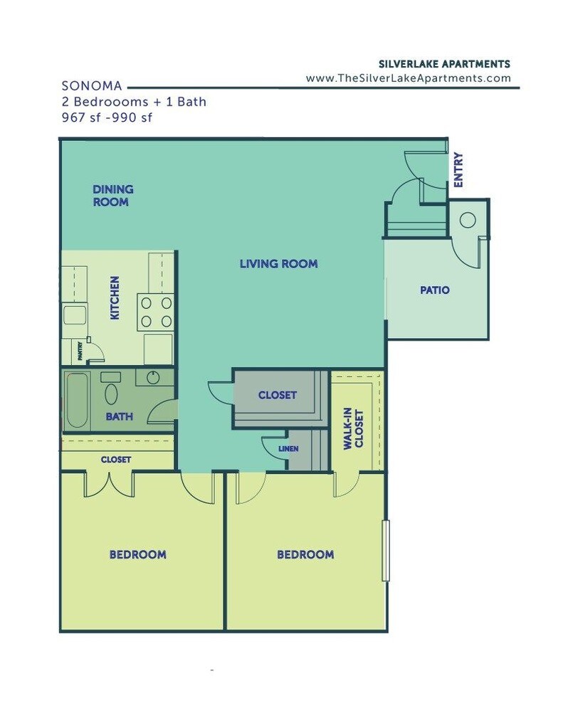 2 Beds, 1 Bath, 990 sq ftModel Gallery