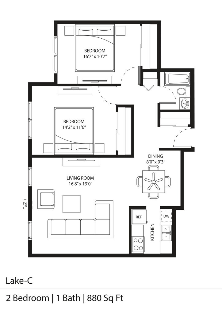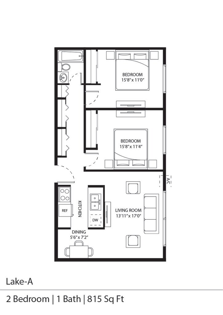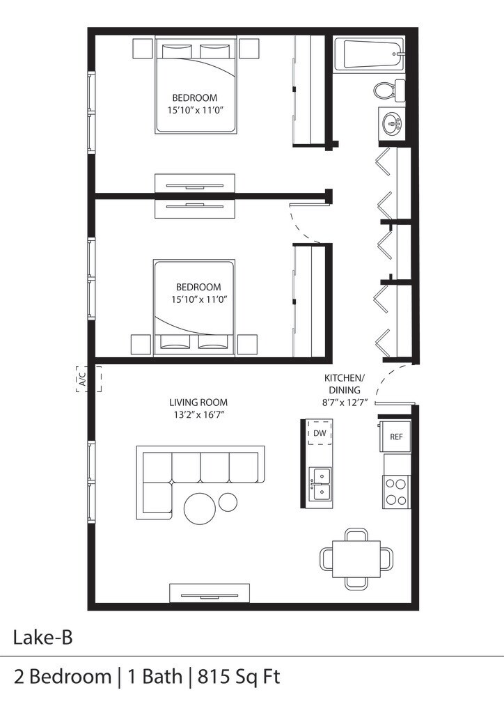 Apartment Model: LakeFrom $1,4342 Bedroom, 1 Bath, 815 sq ftAvailable Now![]()