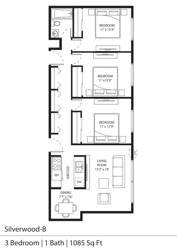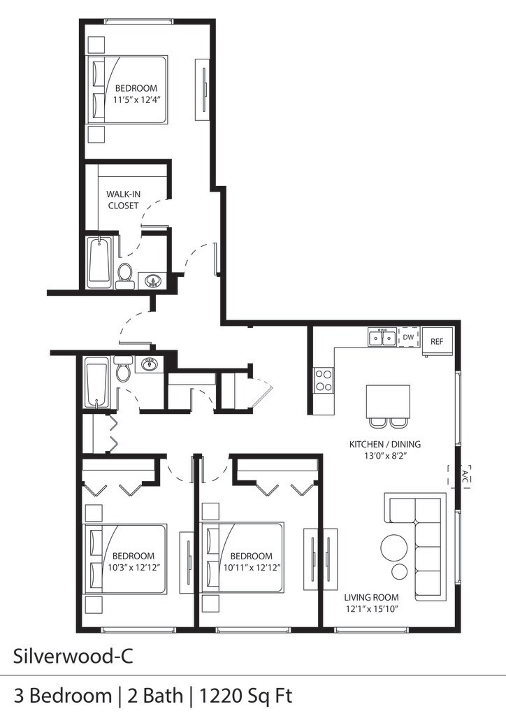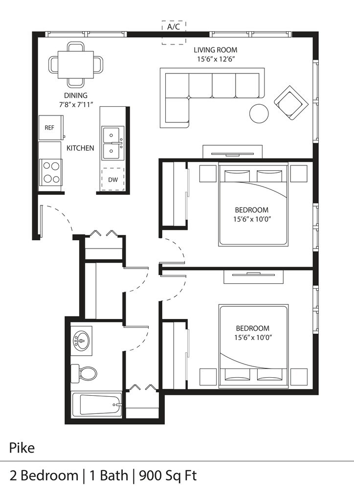 Pike - Floorplan 1 Apartment Unit: 10-207Apartment Model: Pike$1,4492 Bedroom, 1 Bath, 900 sq ftAvailable December 3, 20253 Bedrooms