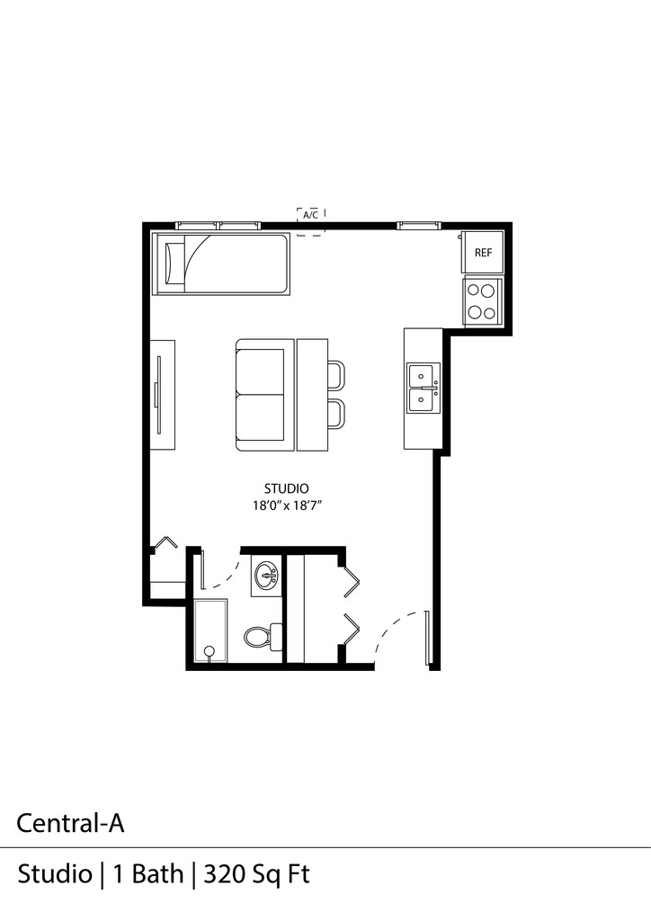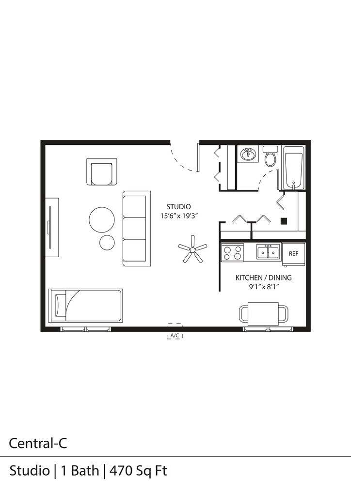 Apartment Model: CentralCall For RatesStudio, 1 Bath, 400 sq ftUnavailable![]()