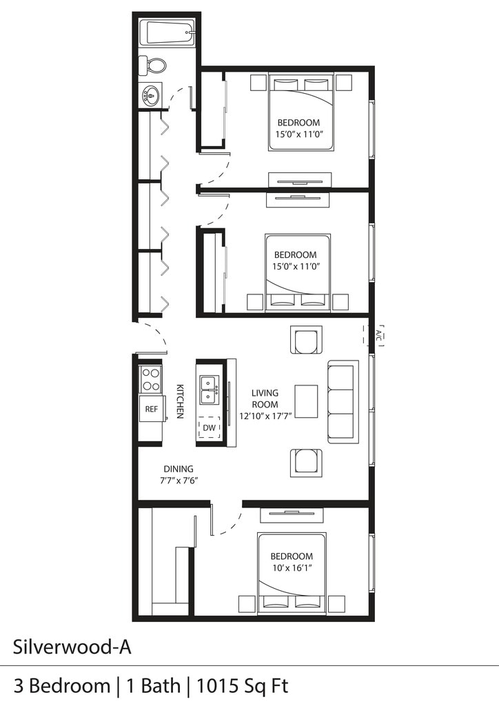 3 Beds, 1 Bath, 1015 sq ftModel Gallery
