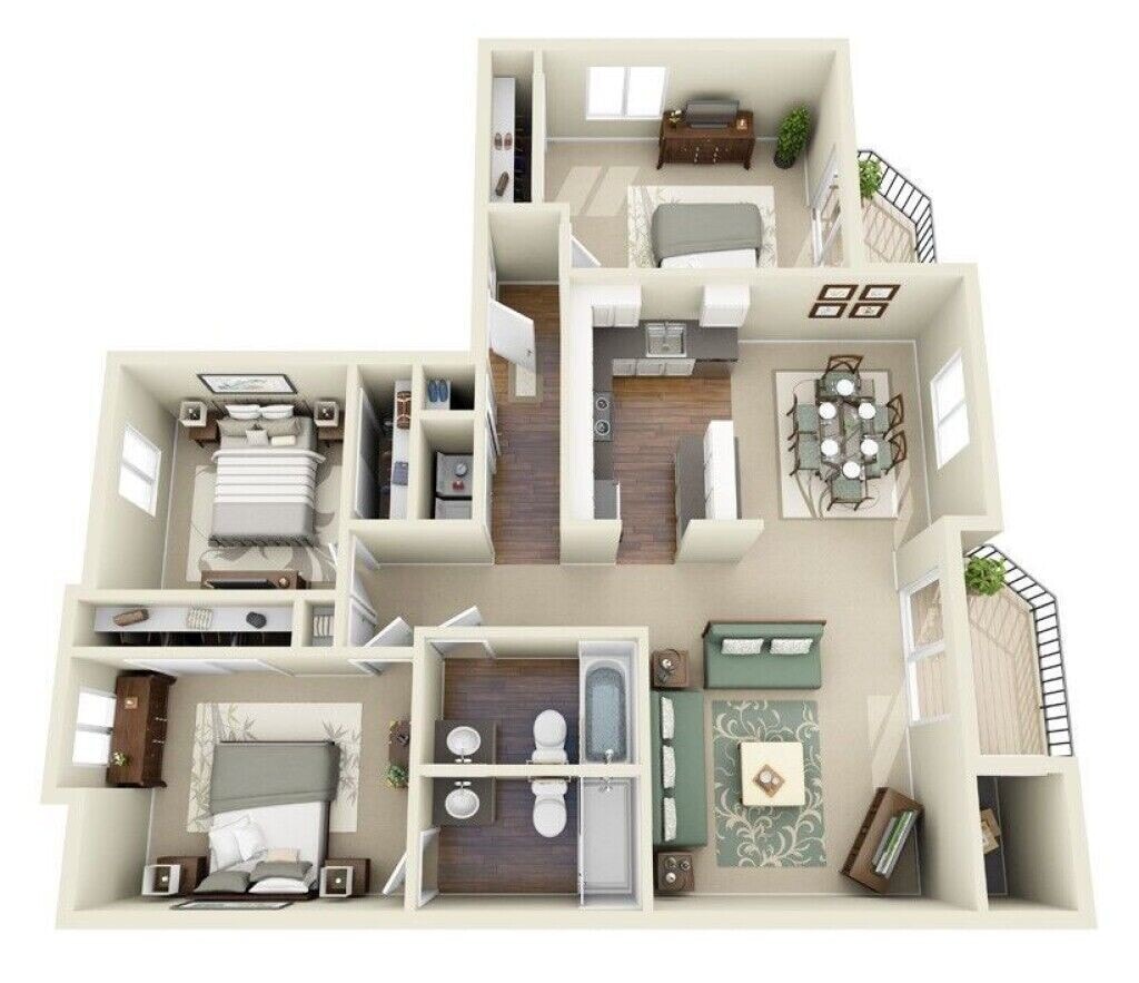Apartment Model: 3BR / 2BA$2,1733 Bedroom, 2 Bath, 1239 sq ftAvailable October 16, 2025Floor plans are artist's rendering. All dimensions are approximate. Actual product and specifications may vary in dimension or detail. Not all features are available in every rental home. Prices and availability are subject to change. Base rent is based on monthly frequency. Additional fees may apply, such as but not limited to package delivery, trash, water, amenities, etc. Deposits vary. Please see a representative for details.