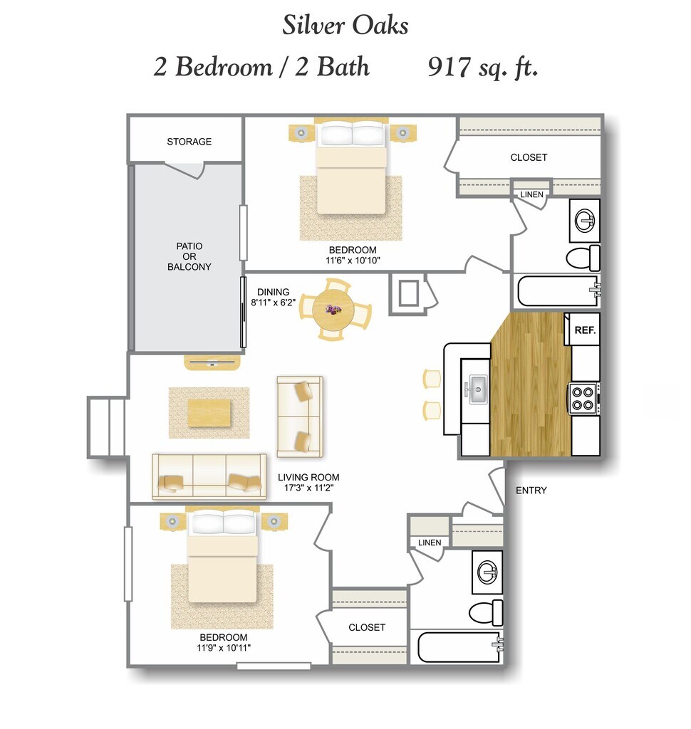 Silver Oaks Apartments offers 1 to 2 Bedroom apartments starting from $689 and having 485–917 sq ft. Here is the current pricing and availability:
