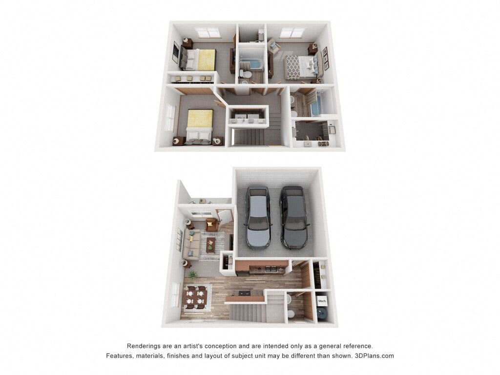 3 Beds, 2.5 Baths, 1260 sq ftAvailable NowModel Gallery