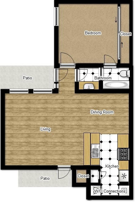 Apartment Model: Without W/D ConnectionsFrom $8391 Bedroom, 1 Bath, 630 sq ftAvailable December 1, 2025FloorplansPhotos![]()
