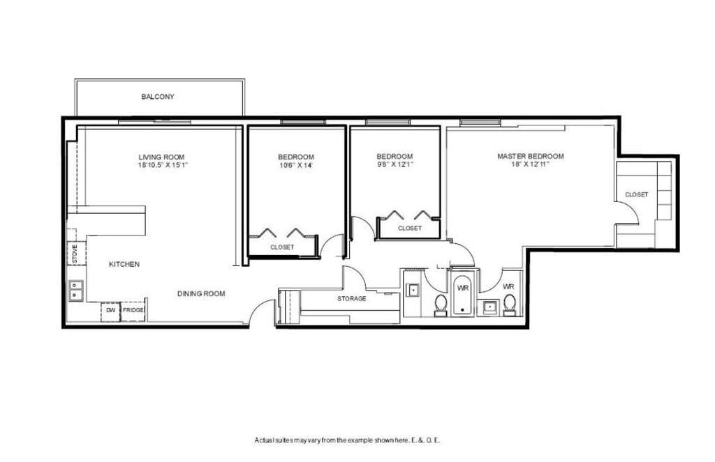 - 1 1/2 baths in 3-bedroom suites