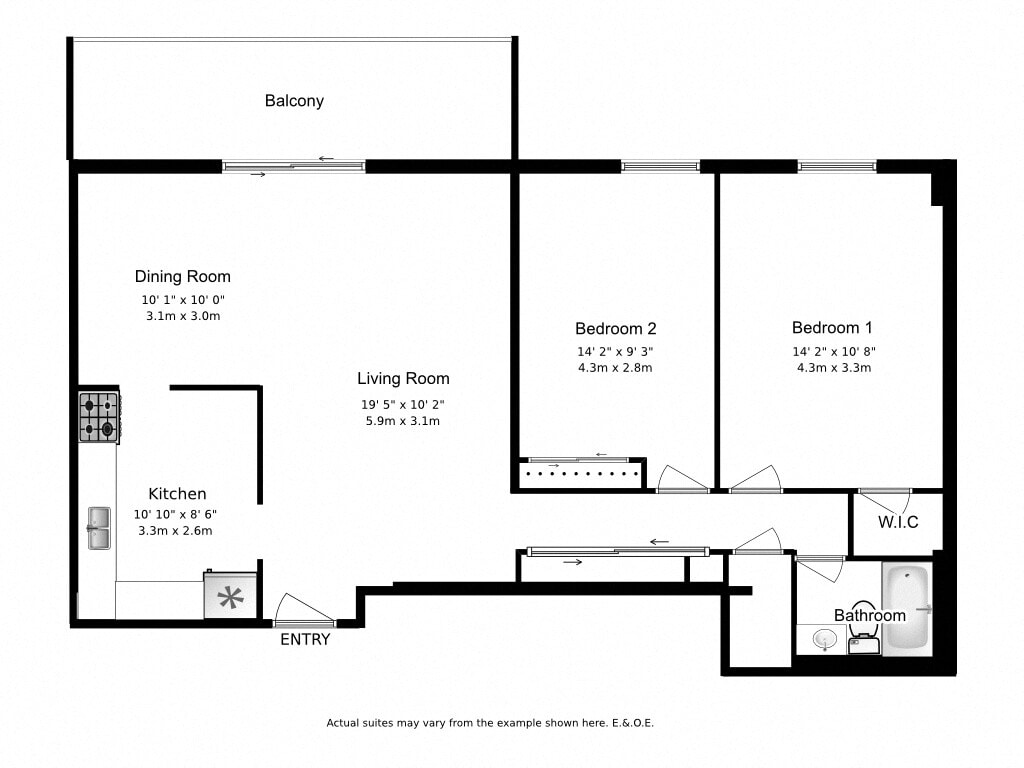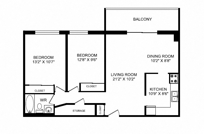1 Bed 1 Bath A - Floorplan 1 2 Bedrooms