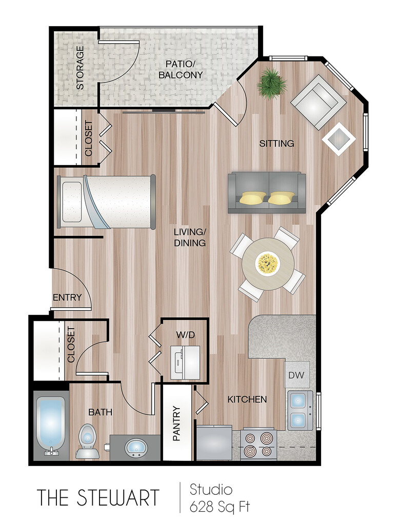 Apartment Model: The StewartFrom $1,670Studio, 1 Bath, 628 sq ftAvailable Now![]()