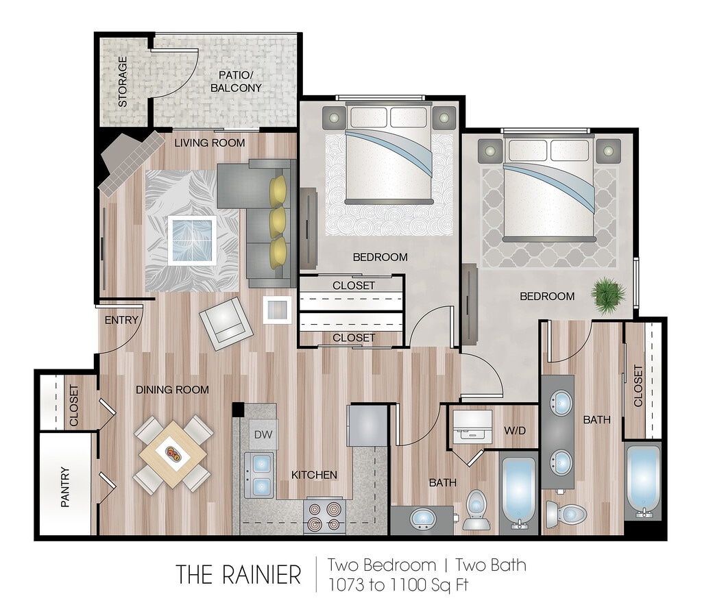 Apartment Model: The Rainier 2From $2,2652 Bedroom, 2 Bath, 1100 sq ftAvailable Now![]()