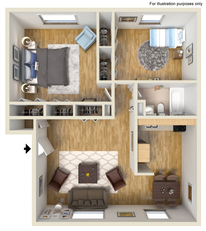 2 Beds, 1 Bath, 890 sq ftModel Gallery