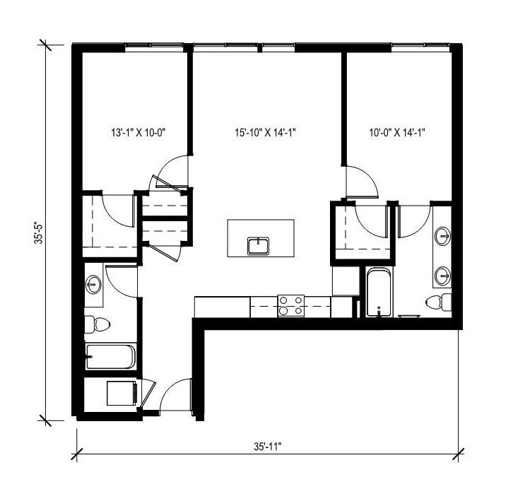 Open 1x1 - 1 - Floorplan 1 Open 1x1 - 2