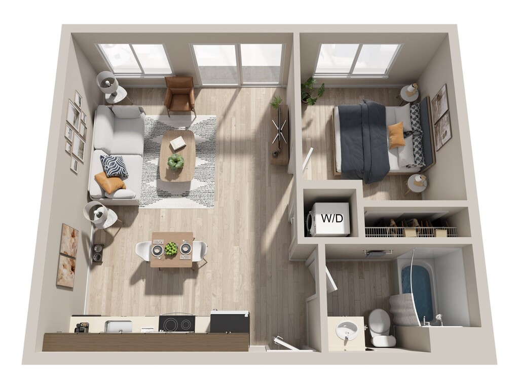 1 Bed, 1 Bath, 590 sq ftModel Gallery