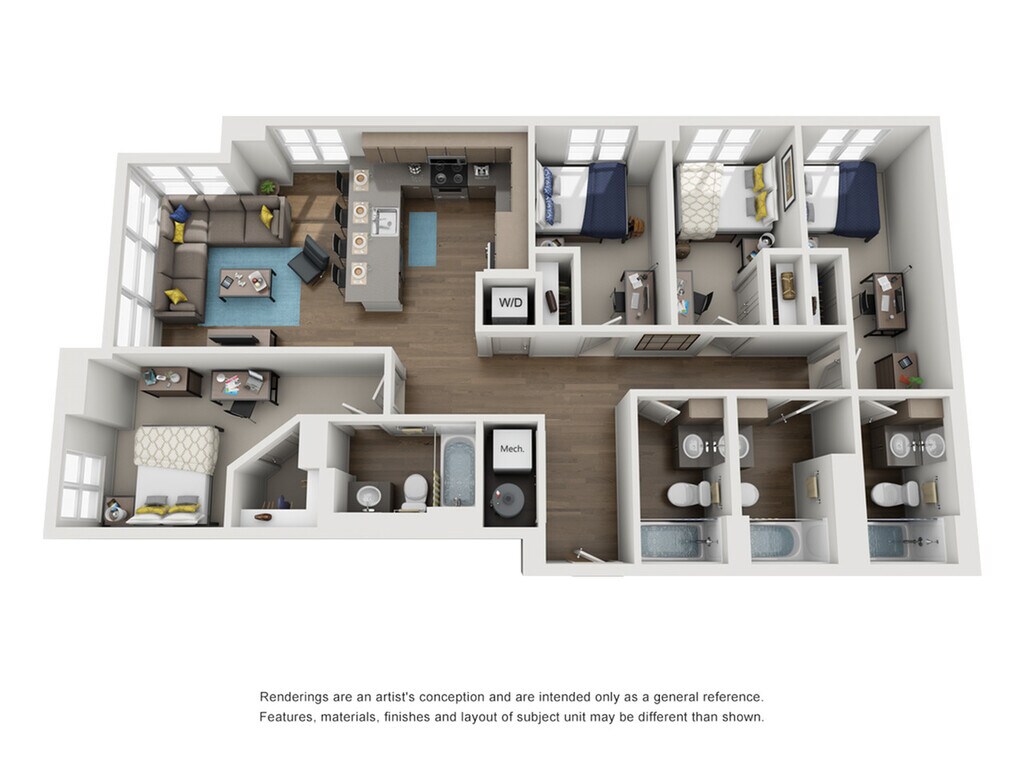 Apartment Model: 4 Bedroom 4 Bathroom CFrom $1,6494 Bedroom, 4 Bath, 1199 sq ftAvailable Now![]() - 4 Bedroom 4 Bathroom C - Floorplan 1 ![]() - 4 Bedroom 4 Bathroom C - Floorplan 2 - 4 Bedroom 4 Bathroom E- From $1,6494 Beds, 4 Baths, 1209 sq ftAvailable Now- Model Gallery- Floorplans- Availability Details- Price - Availability Date - Unit - Sq Ft - From $1,649 - Available Now - 4 Bedroom 4 Bathroom E - 1209 sq ft - Model Amenities and Features- Features- Air Conditioning