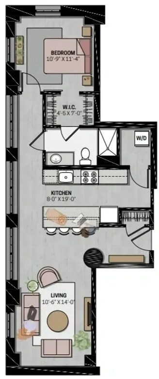 Compact, clever, and full of charm — The Trolley is a 400 square foot studio designed to make the most of every inch. With a streamlined layout and integrated kitchen, living, and sleeping area, this efficient space is perfect for minimalist living or city explorers. Enjoy the convenience of in-unit washer/dryer, a full bath, and stylish finishes throughout. Large windows bring in ample natural light, while built-in storage solutions keep your space tidy and functional. Whether you're looking for your first place or a modern landing pad in the heart of the city, The Trolley delivers comfort, character, and value — all in one smartly designed studio.