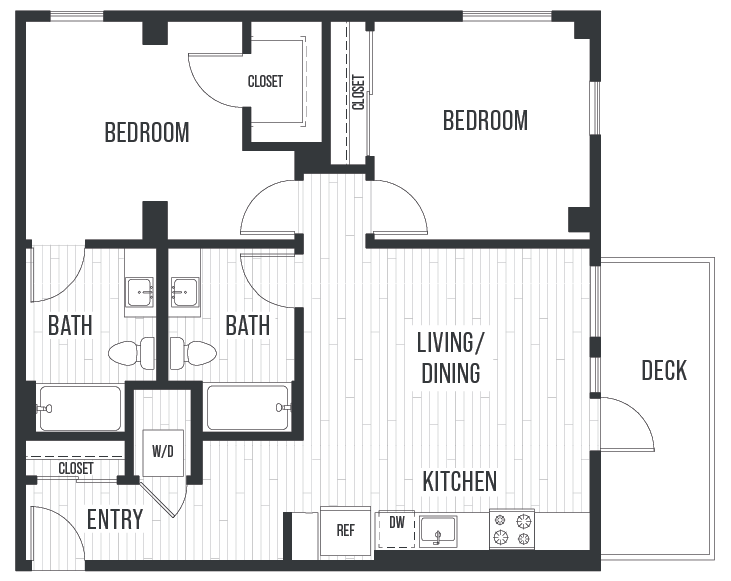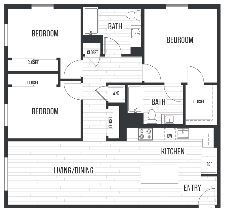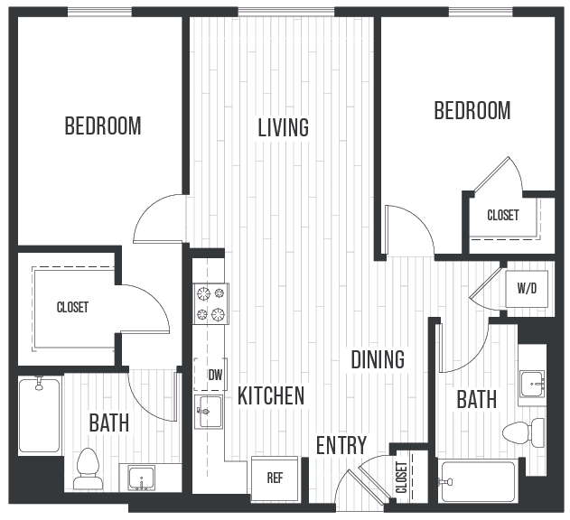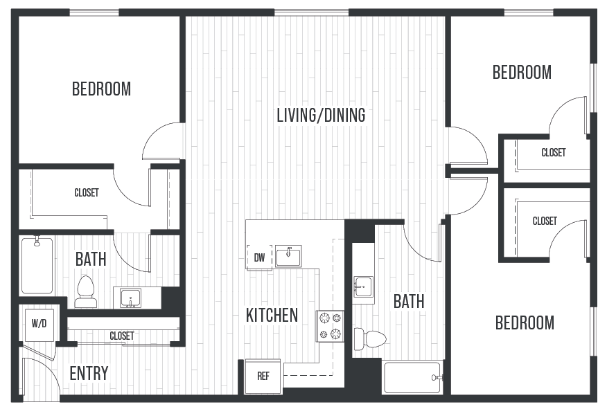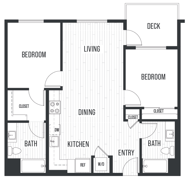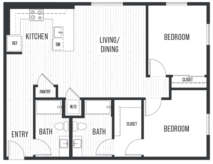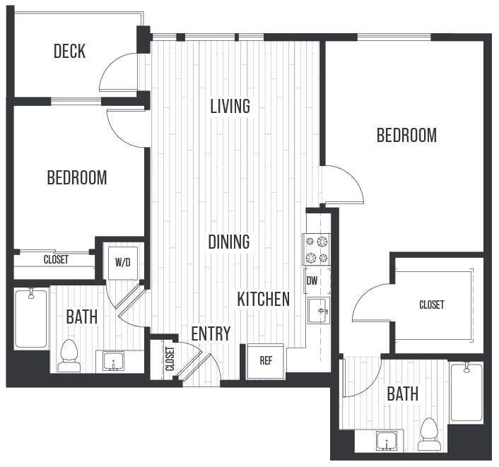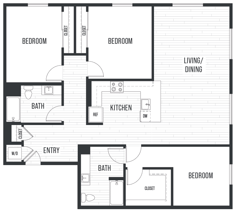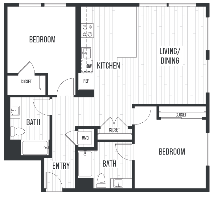 1 Bed, 1 Bath, 667-864 sq ftAvailable NowLargest 1 BedroomThis is the largest 1 Bedroom at this PropertyModel Gallery