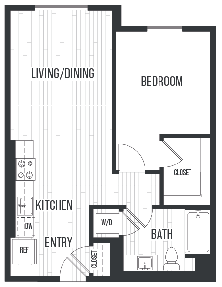 Studio, 1 Bath, 476-488 sq ftModel Gallery
