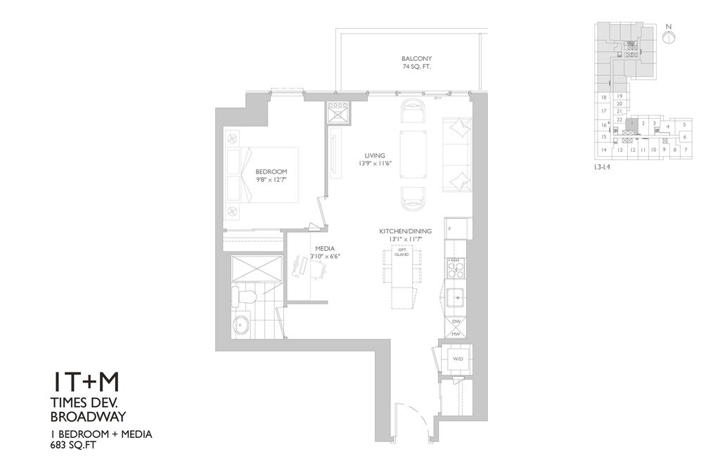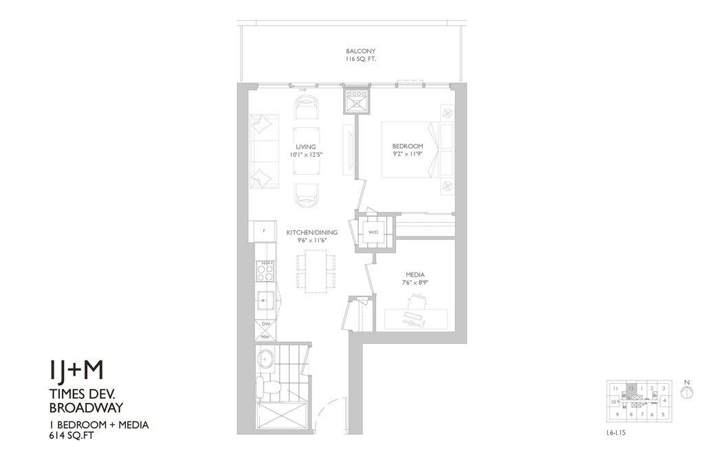 One Bedroom - 1I - BF - Floorplan 1 One Bedroom + Den - 1L+M