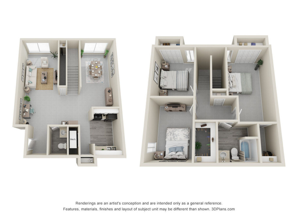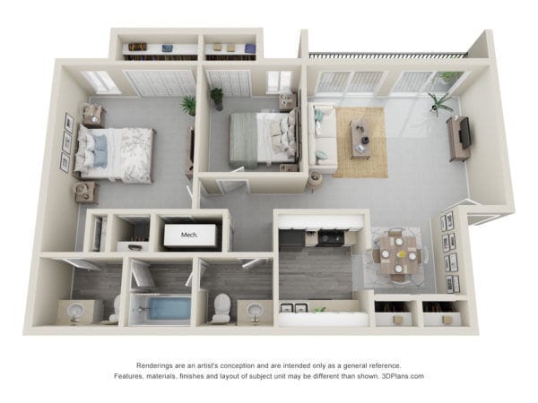 2 Beds, 2 Baths, 1047 sq ftModel Gallery